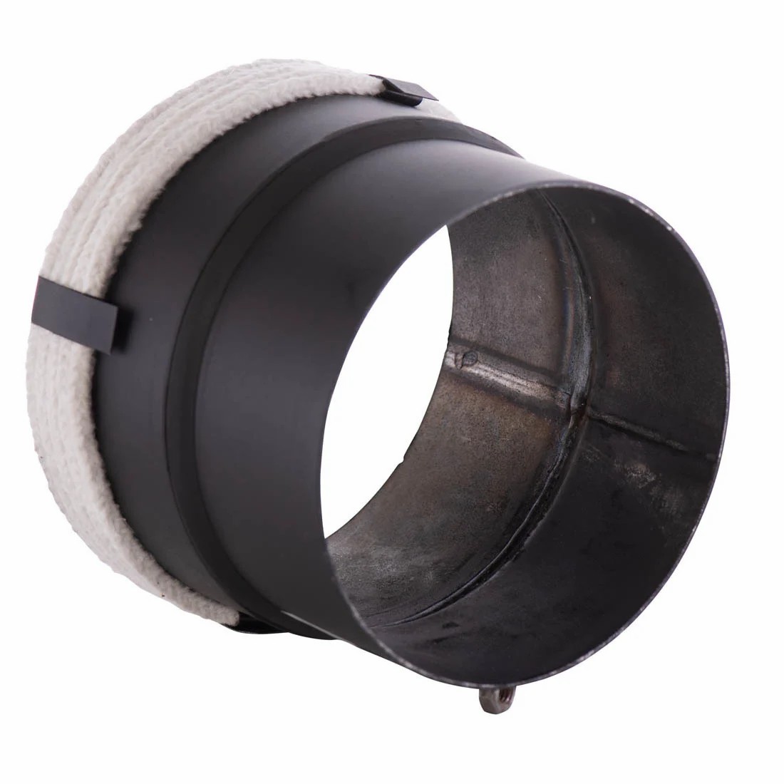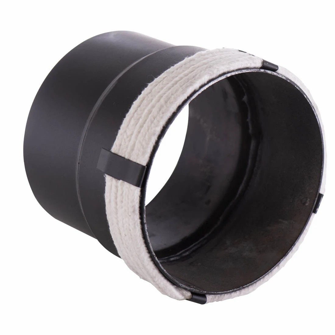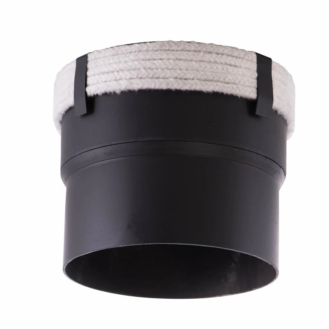 Schwarzer Adapter mit weißer hitzebeständiger Glasfaserkordel. Die Kordel sorgt dafür, dass keine Gase oder Rauch entweichen können.