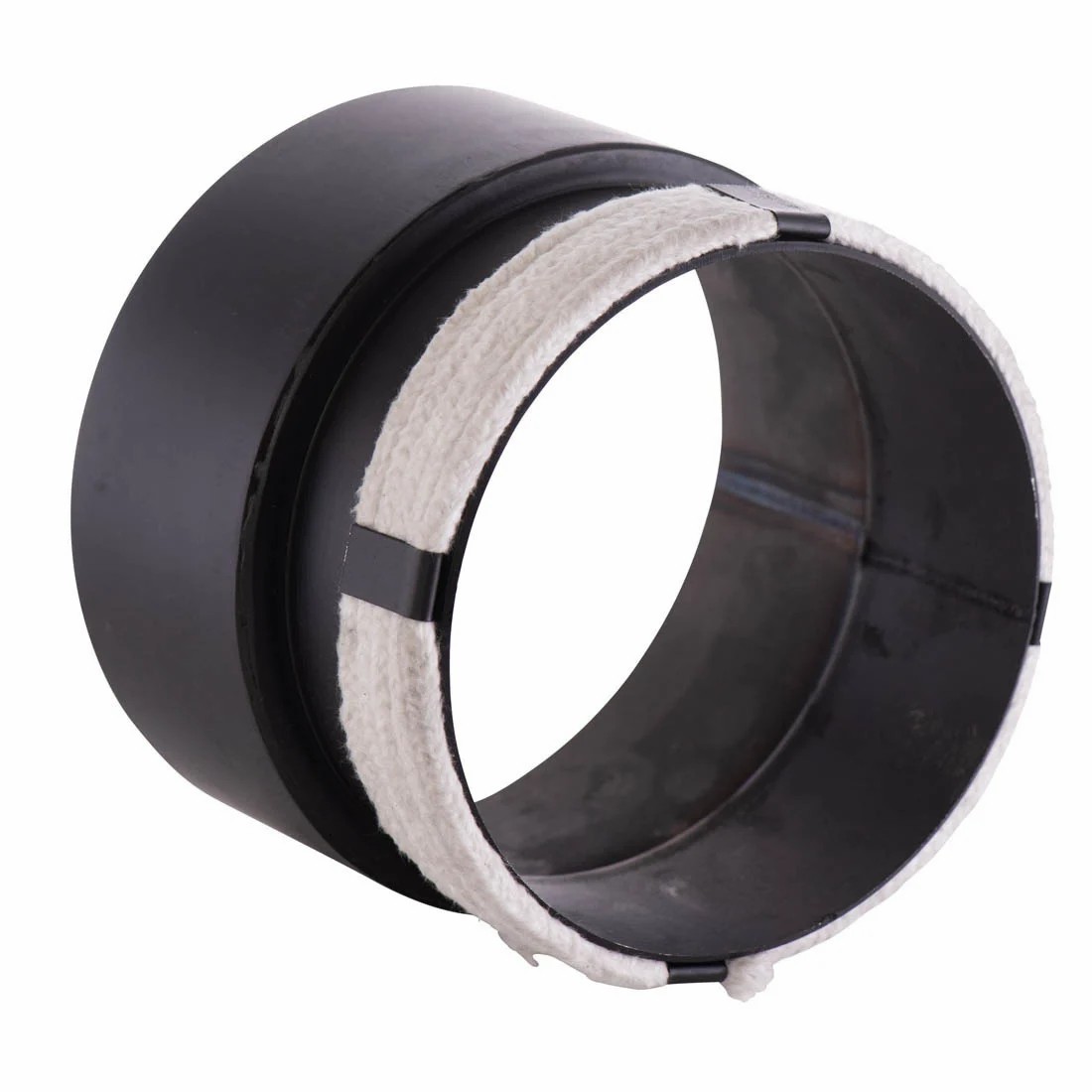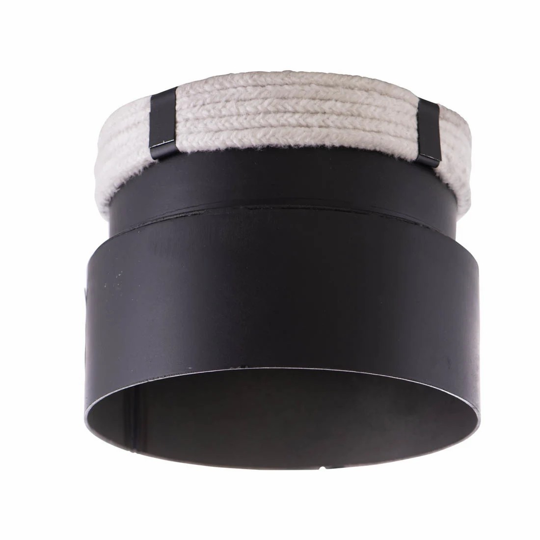 Schwarzer Adapter mit weißer hitzebeständiger Glasfaserkordel. Die Kordel sorgt dafür, dass keine Gase oder Rauch entweichen können.
