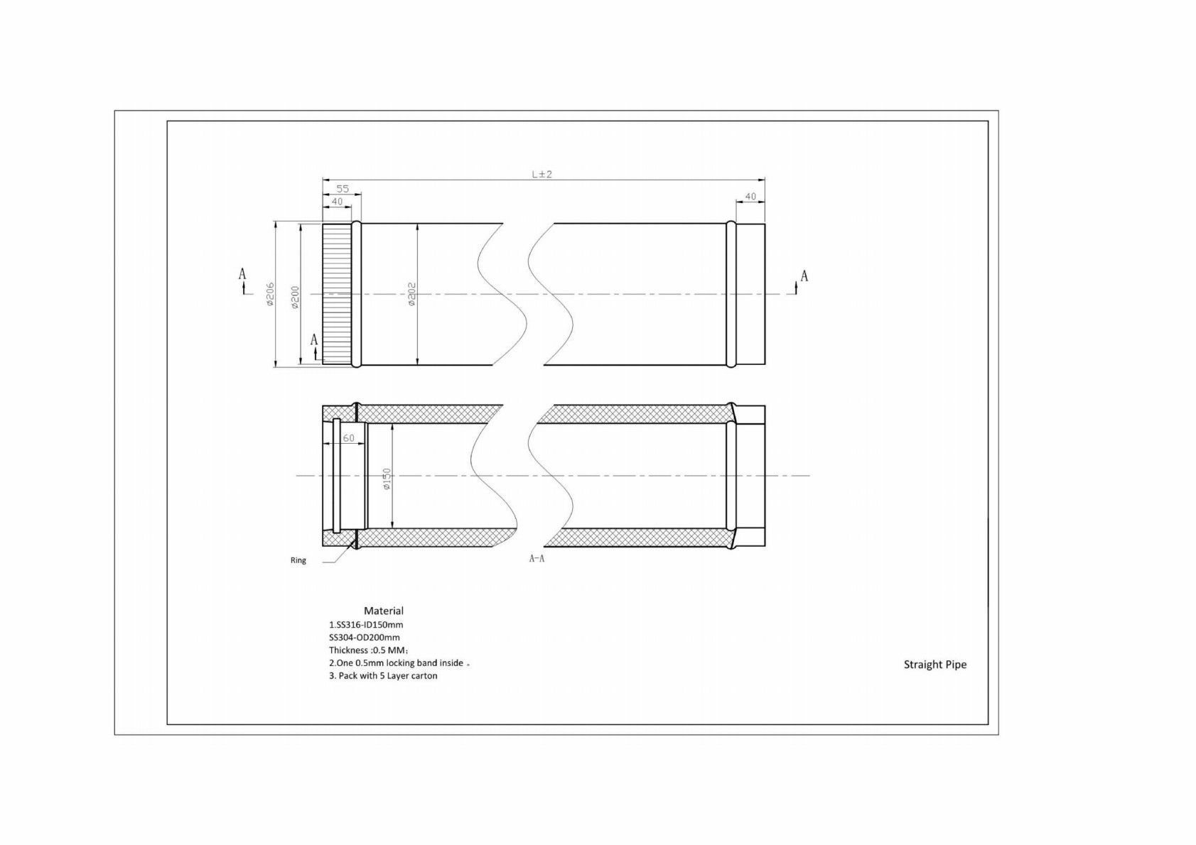 Produktinformationen "Ofenrohr 25cm 150/200mm 0,5mm"